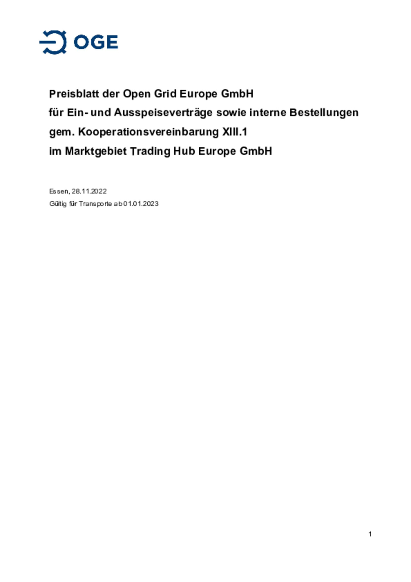 Für das Marktgebiet Trading Hub Europe (THE) haben die Fernleitungsnetzbetreiber (FNB) auf Basis der Festlegung „Genehmigung der Neuberechnung des Referenzpreises für das Jahr 2023 …(REGENT-Neurechnung 2023, BK9-22/615)“ der Bundesnetzagentur (BNetzA) das Netzentgelt ab 01.01.2023 erneut ermittelt.