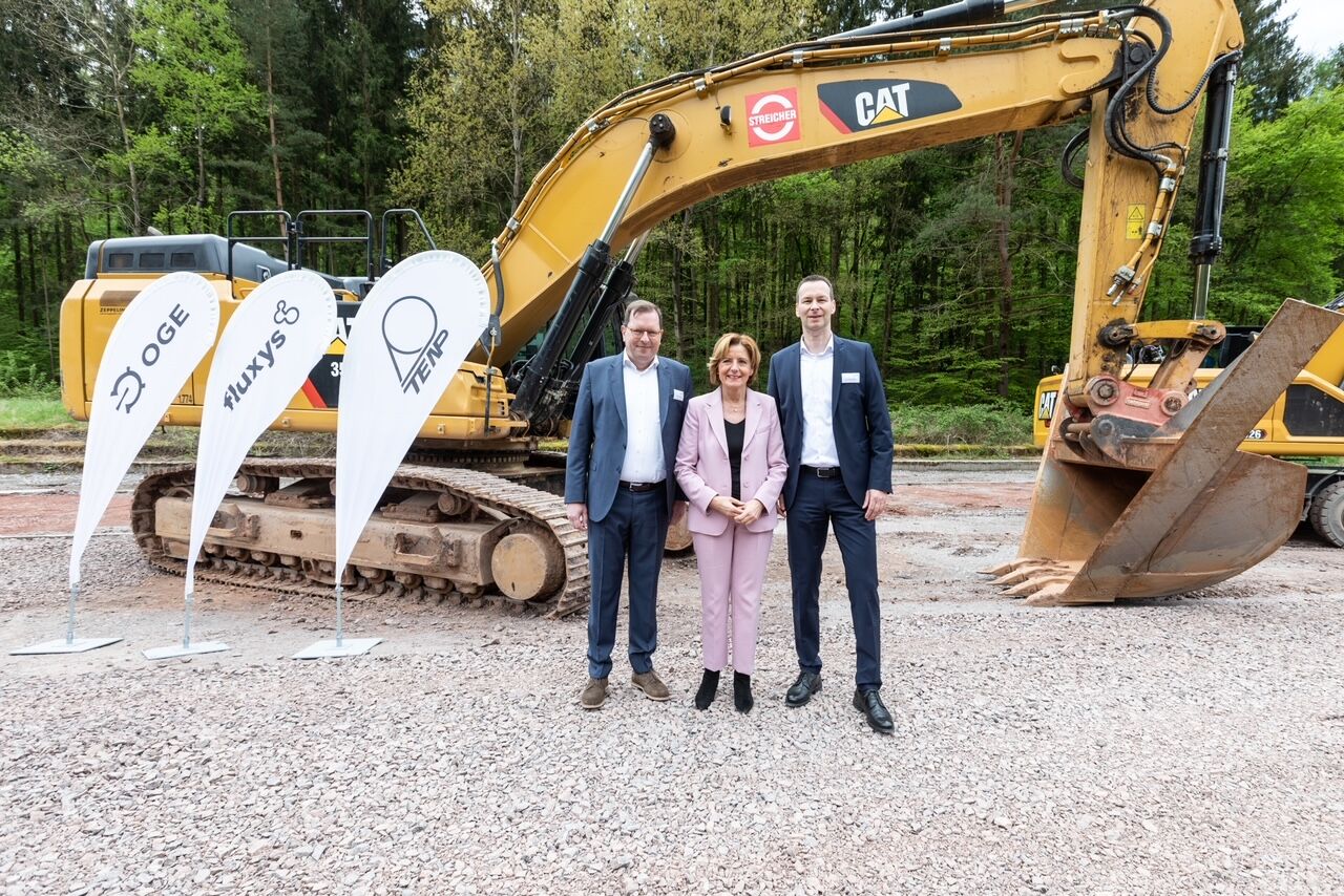 v. l. n. r: Friedrich Rosenstock, Geschäftsführer Fluxys TENP; Malu Dreyer, Ministerpräsidentin Rheinland-Pfalz; Dr. Thomas Hüwener, OGE-Geschäftsführung