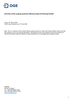 OGE markets various capacity products via the primary and secondary marketing platform PRISMA. Detailed product information can be found in the OGE product data sheet.