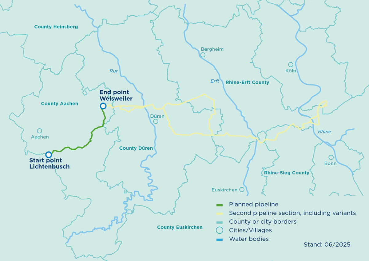 As part of the H2ercules infrastructure project, the H2ercules Belgium pipeline will connect numerous entry and exit points along the entire route from Lichtenbusch near Aachen to Cologne.
