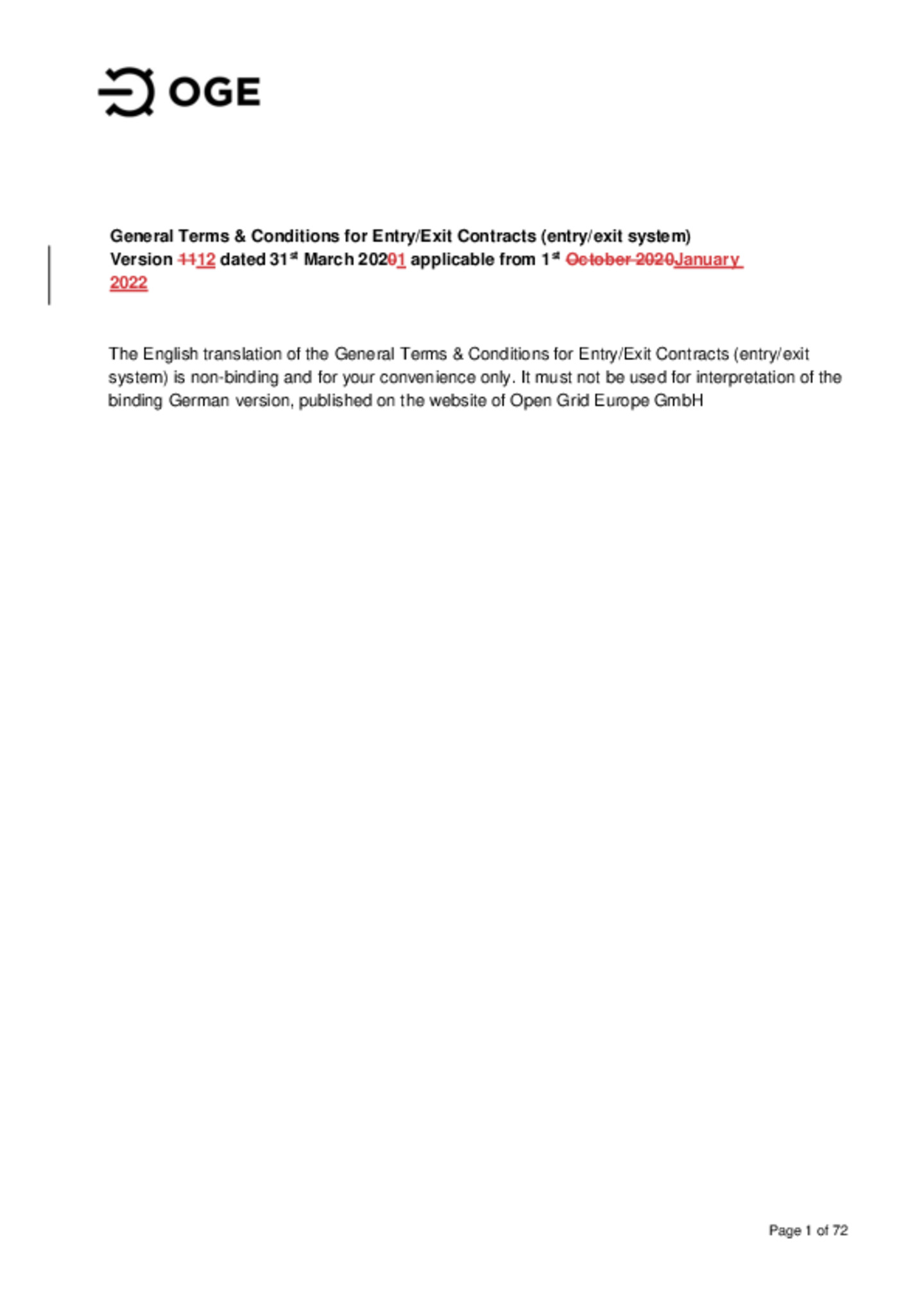 Price Sheet of Open Grid Europe GmbH for entry and exit contracts as well as internal orders in accordance with Cooperation Agreement XII in the market area Trading Hub Europe GmbH