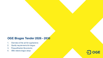 All interested gas traders are invited to participate in this tender. Detailed information regarding participation and delivery conditions, as well as applicable deadlines, can be found in the PDF document “Biogas Tender 2026–2030” and the underlying OGE Biogas Supply Agreement, both available for download at the bottom of the webpage.