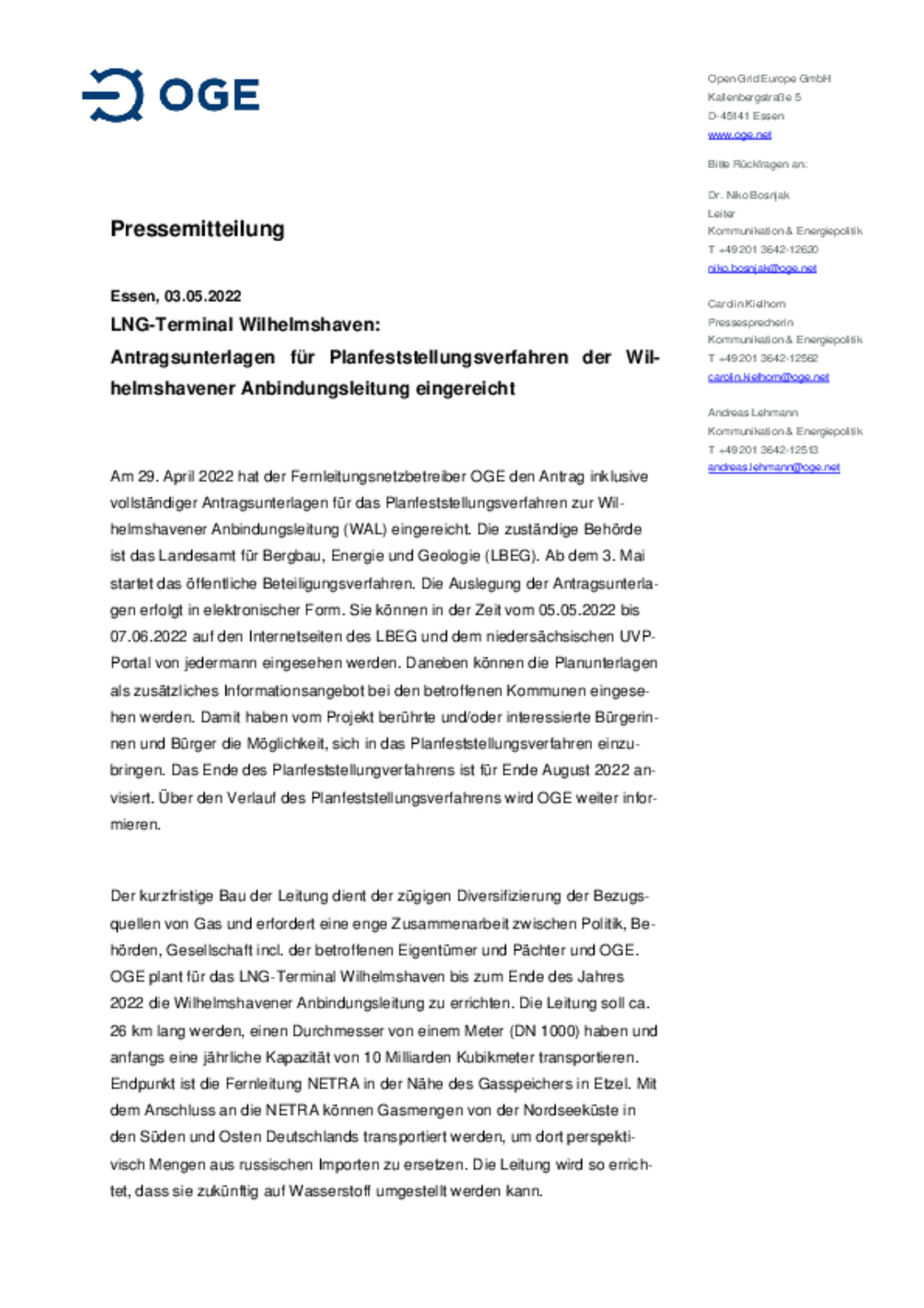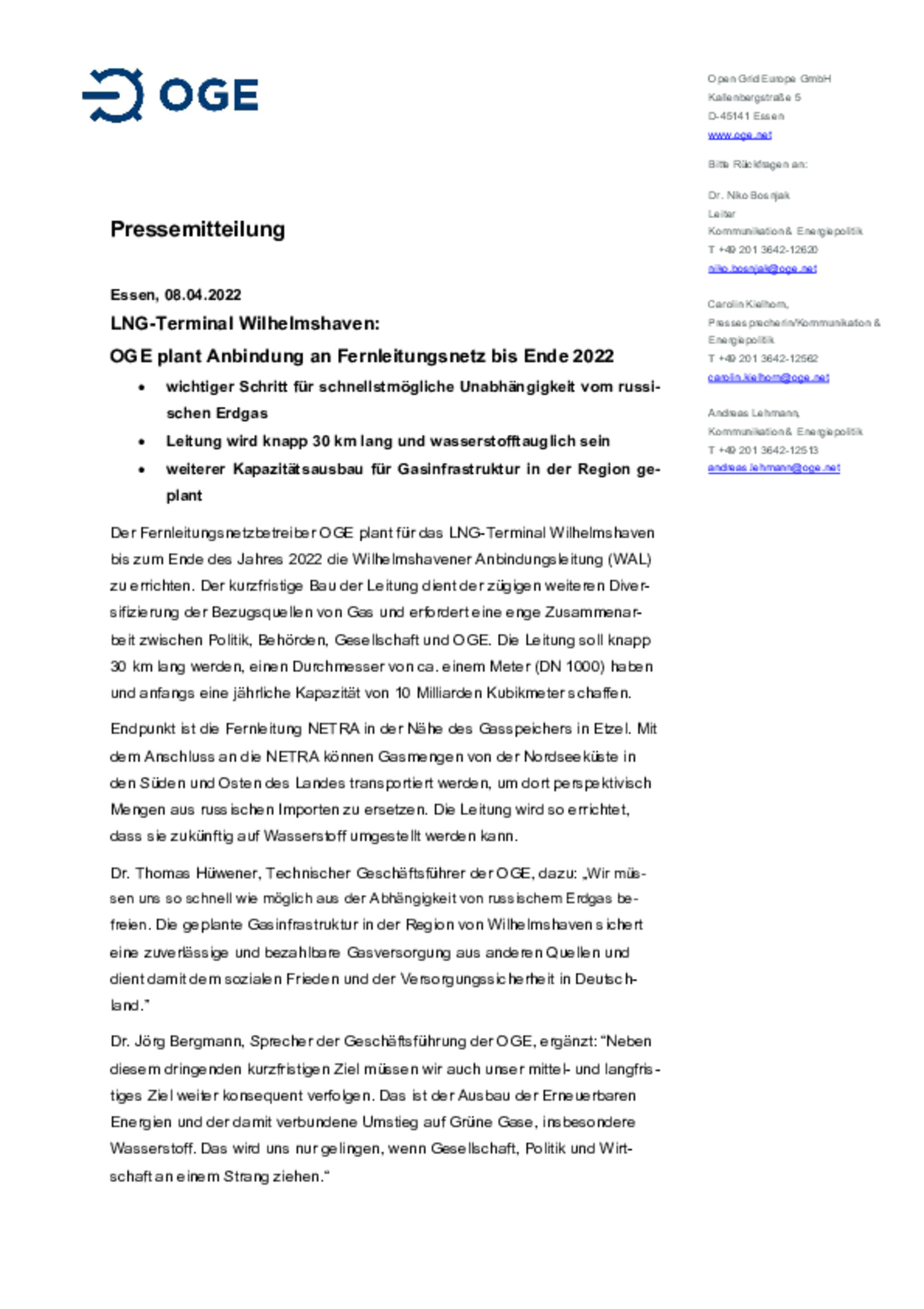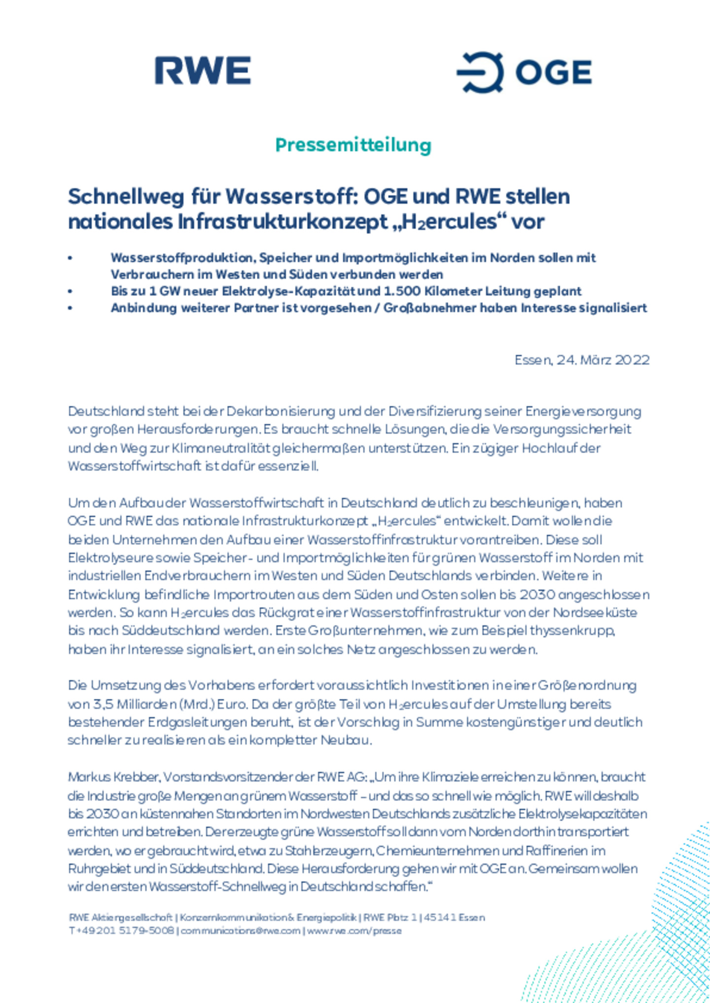 Essen, 19.05.2022. Zur Erreichung der ambitionierten Klimaziele ist im Mobilitätssektor, vor allem im Güterverkehr, der Wechsel auf einen klimafreundlichen Treibstoff unumgänglich. Um diesen Wechsel …zu ermöglichen, haben das schweizerische Unternehmen H2 Energy Europe AG (H2 Energy) und die in Essen ansässige Open Grid Europe GmbH (OGE) eine Absichtserklärung über folgendes Konzept geschlossen.