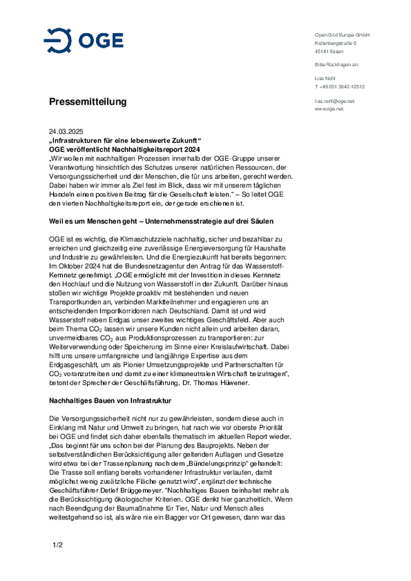 Mit Blick auf die Zukunftsfähigkeit des Kraftwerksstandorts Wilhelmshaven hat Onyx Power eine Vereinbarung mit dem Gasnetzbetreiber Open Grid Europe GmbH (OGE) über eine Anschlussmöglichkeit an die …Wasserstofftransportleitung „Wilhelmshaven Küstenlinie“ (WKL) unterzeichnet.