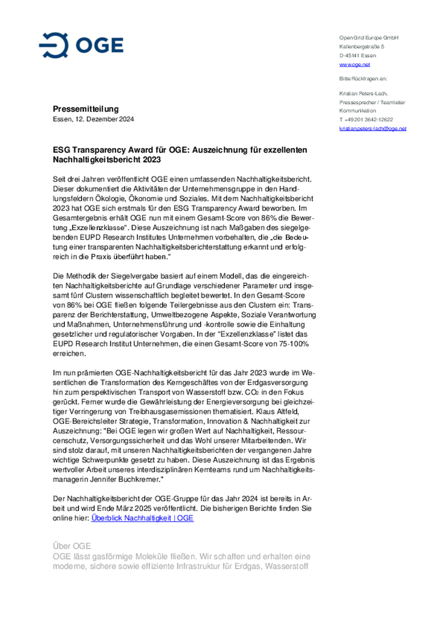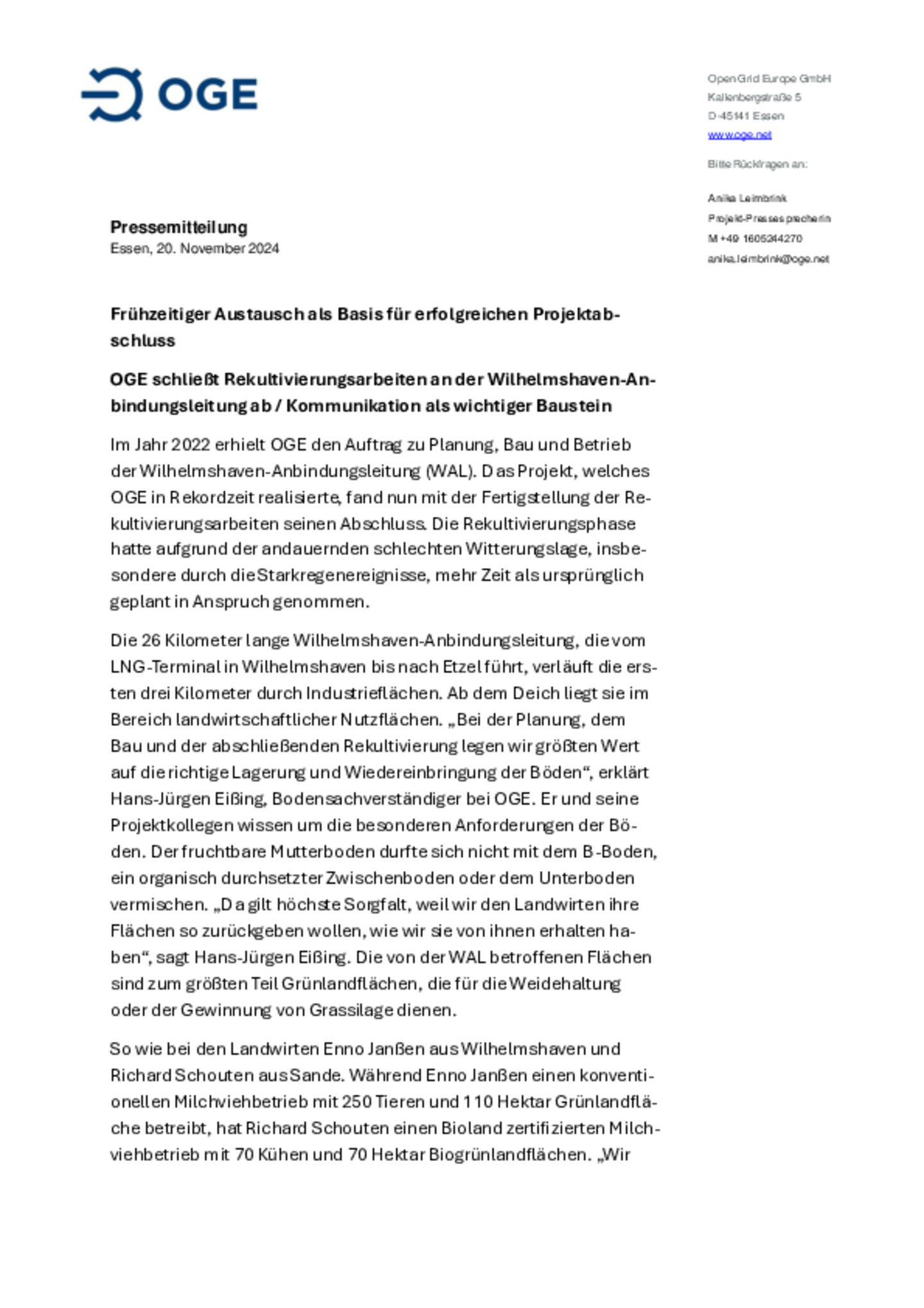 Dieser Vertrag regelt den Anschluss der Gasanlage des Anschlussnehmers an das Gasversorgungsnetz der Open Grid Europe (Netzanschluss) am Netzanschlusspunkt (NAP) zur Entnahme von Gas (Ausspeisepunkt)…. Dies umfasst insbesondere Regelungen zum Betrieb und zur Änderung der dem NAP zugeordneten Gas-Druckregel- und Messanlage sowie den Informationsaustausch zwischen den Vertragspartnern.