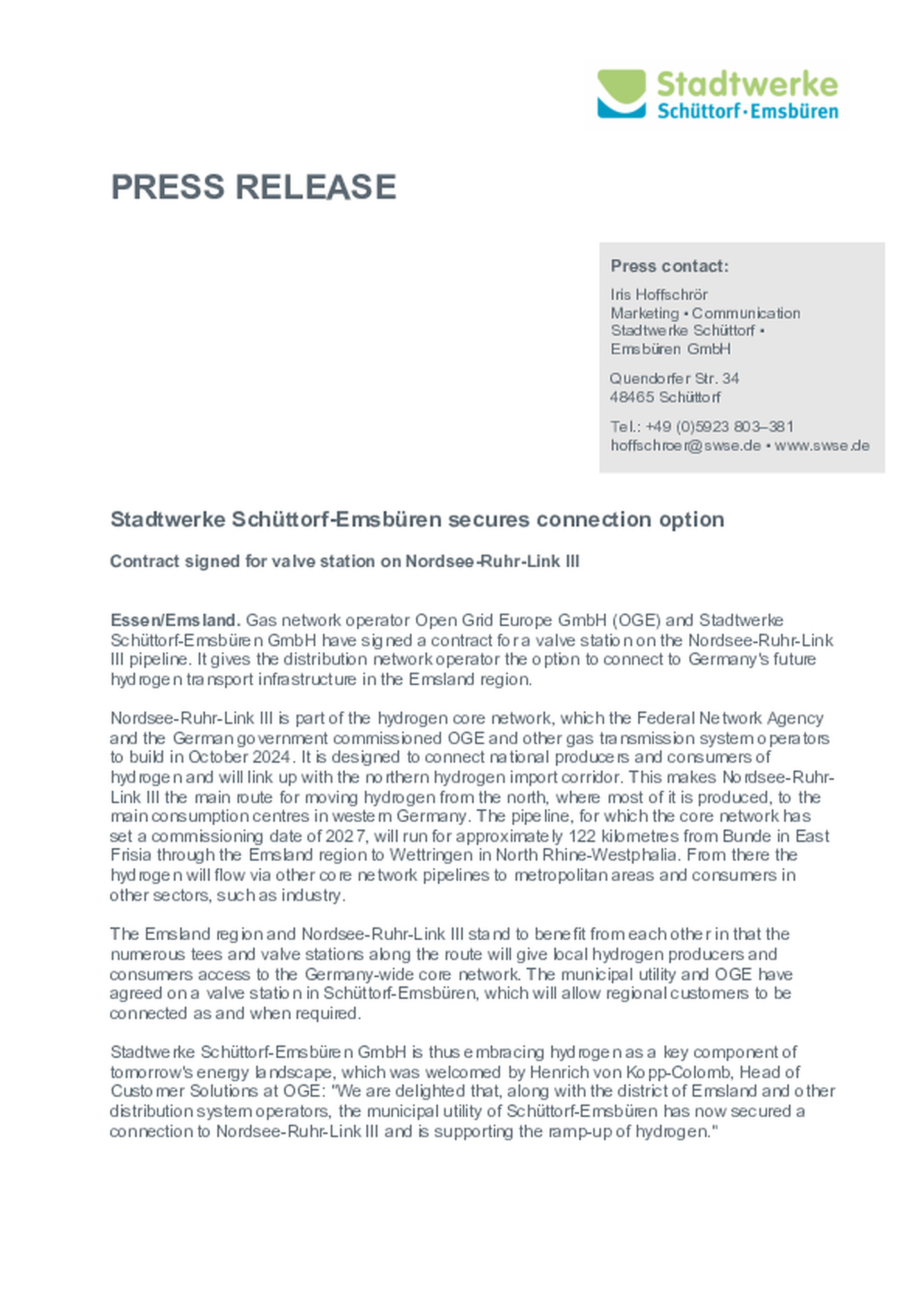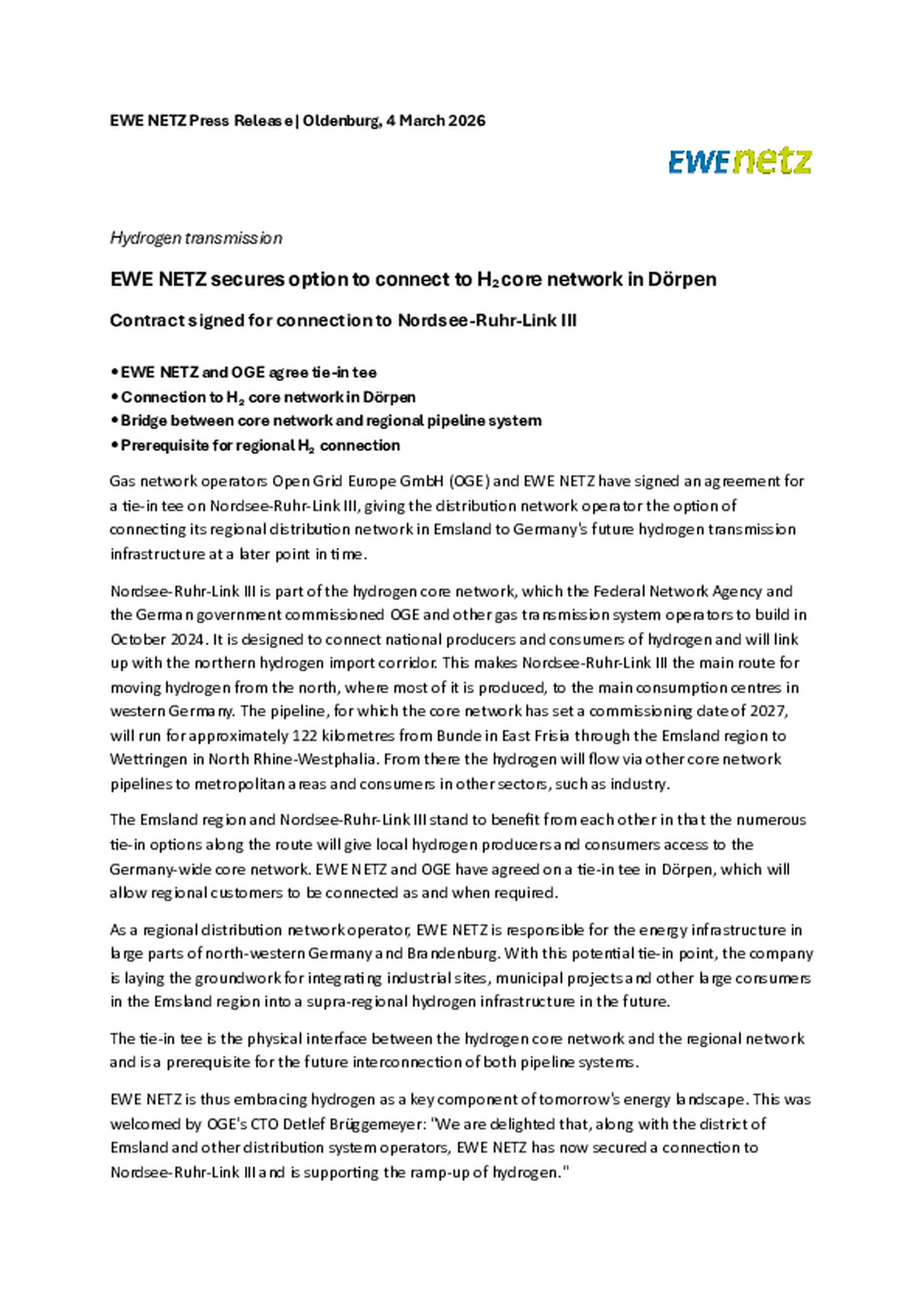 This price sheet is part of the General Terms and Conditions for Entry/Exit Contracts Governing the Transportation of Hydrogen in the GET H2 Network of Multiple Network Operators in the currently …valid version (GTC). Valid for hydrogen transports from commissioning of the first part of the GET H2 Network of Open Grid Europe GmbH (expected in Q1 2026). Status 20 January 2026