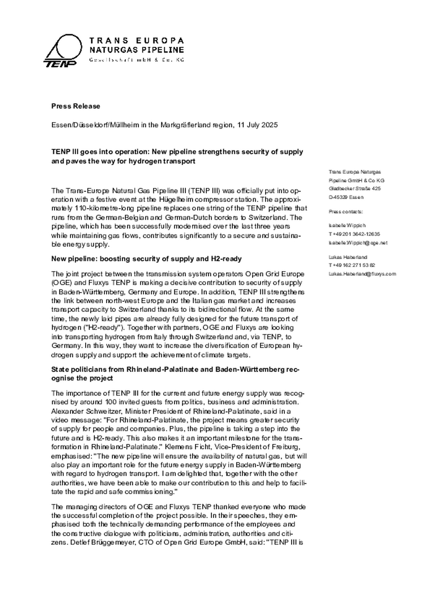 issued by the hydrogen network operators Nowega GmbH, Open Grid Europe GmbH and Thyssengas GmbH dated 23 June 2025