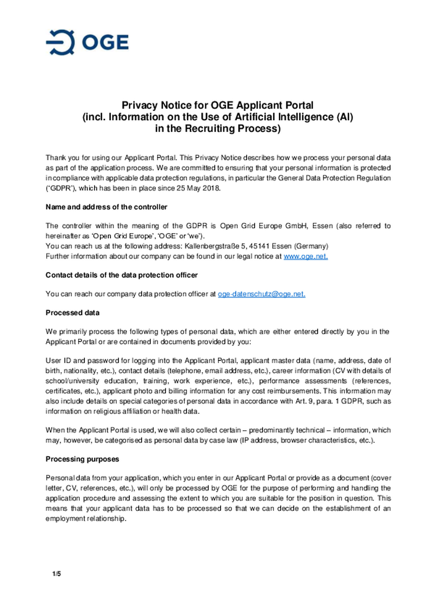 Color and inverted logo, eps and jpg / Photos of the management / Photo of the headquarter / Photos of compressor station and pipeline construction. OGE grants the users the right to use, store and …reproduce the texts, images and graphics provided in the press kit in whole or in part for journalistic purposes within the scope of the applicable press and copyright law, whereby OGE must be named as source/author. The use and reproduction of the OGE logo requires the prior consent of OGE.
