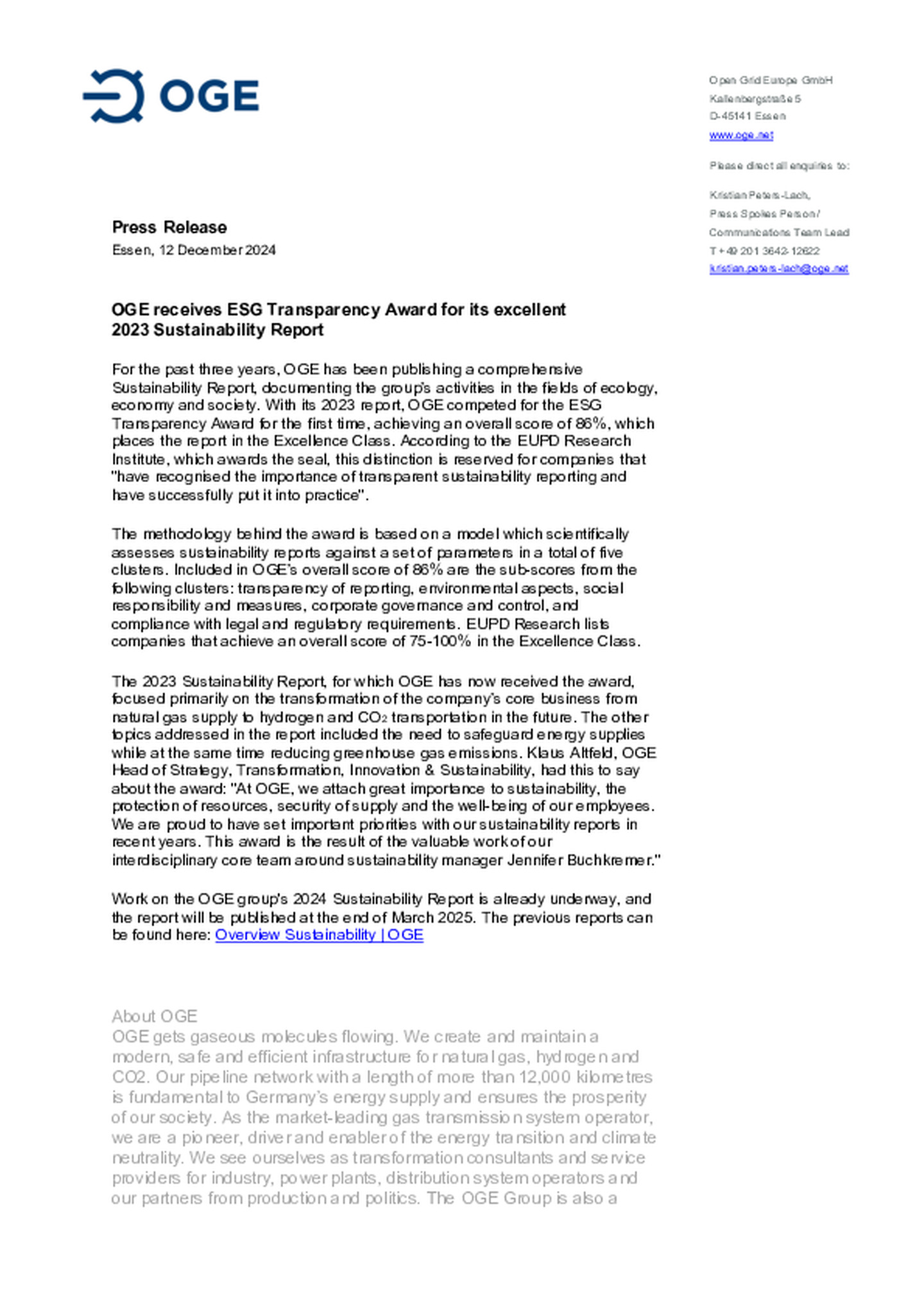 Pursuant to Article 7 of the Gas Network Access Ordinance, network operators have to sign network interconnection contracts with operators of networks to which they are connected via a network …interconnection point. The specimen network interconnection contract published by Open Grid Europe is based on the provisions of Section 2 of Part 3 (Articles 26-31) and of Part 5 (Articles 52-62) of the Agreement on Cooperation between Operators of Gas Supply Networks Located in Germany as Amendement from 22nd March 2024 (KoV XIV), which is attached to the contract as Annex 5 for information. Annexes 1 to 4 of the network interconnection contract describe in more concrete terms the provisions of Section 2 of Part 3 (Articles 26-31) of the KoV XIV as provided in Article 26, Section 3 of KoV XIV. The supplementary provisions describe, in particular, the exact location of the network interconnections (Annex 1), their combination (where applicable) into exit zones (Annex 4) and the technical framework applicable to the relevant network interconnection and/or the relevant exit zone (only in German).