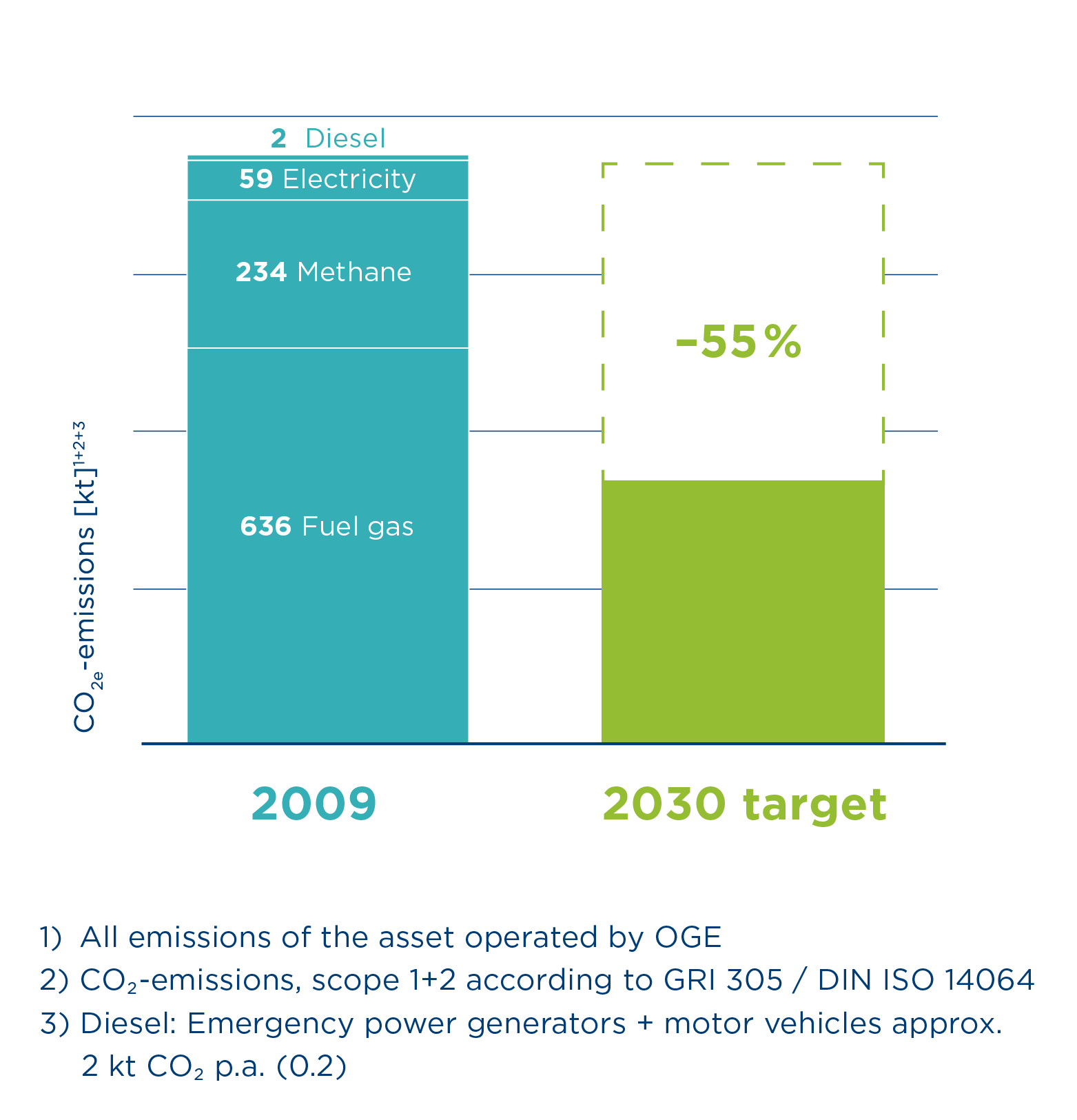 To achieve our shared climate targets in Germany and Europe, we need to cut GHG emissions in all areas, which is why we at OGE set ourselves ambitious reduction targets.